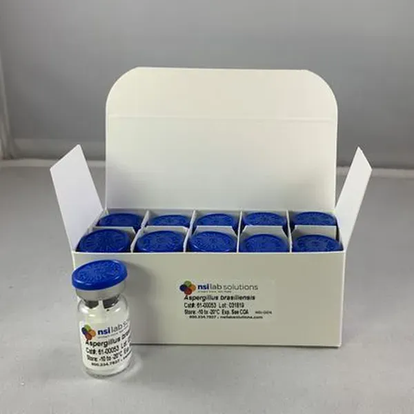 Designed for USP61/62, A. brasiliensis, NCPF 2275. Each Microgel Flash™ pellet is formulated in our proprietary Microgel-Flash quick dissolve matrix at approximately 1000cfu delivering <100cfu per 100uL inoculum after hydration in 1.5mL in supplied peptone buffer. At least 10 tests per vial.  Exact activity is listed on accompanying COA. Supplied in pack of 10 individually vaccum sealed samples along with 10 x 1.5mL of sterile peptone buffer.  Other collection numbers are ATCC 16404 and WDCM 00053.Stores at -10C to -20C.