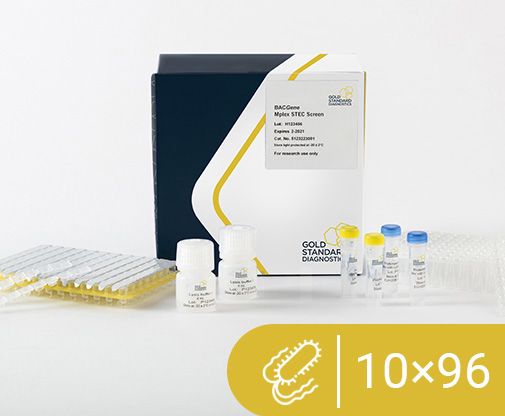 The BACGene Mplex STEC screen real-time PCR detection kit provides materials for a rapid and reliable detection of shigatoxins encoded for by the stx1 and stx2 genes and another genetic marker eae, which encodes for the adhesion factor Intimin, is known to enhance the virulence of STEC. It can be used as a screening step in the Top7 workflow or a confirmation following a positive PCR result for O157. Detects DNA in several food products and environmental samples from food production facilities. The kit is intended to be used in analytical laboratories and may also be applied for other purposes in food product research and analysis fields, e.g. microbial monitoring of production processes.