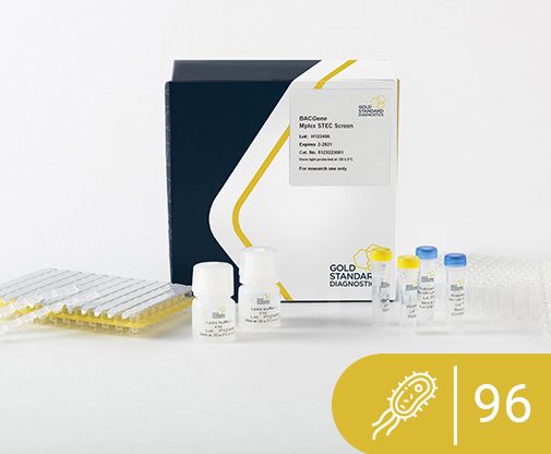 The BACGene Mplex STEC Screen kit is a multiplex real-time PCR kit for a fast and reliable detection of the stx1stx2 and eae genes in various matrices. It can be used as a screening step in the Top7 workflow or a confirmation following a positive PCR result for O157.