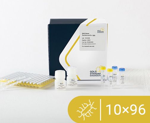 The BACGene Salmonella spp. real-time PCR detection kit provides materials for a rapid and reliable detection of Salmonella spp. Detects DNA in all human food products and environmental samples from food production facilities. The kit is intended to be used in analytical laboratories and may also be applied for other purposes in food product research and analysis fields, e.g. microbial monitoring of production processes.