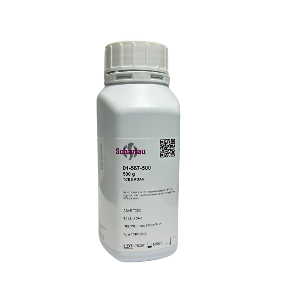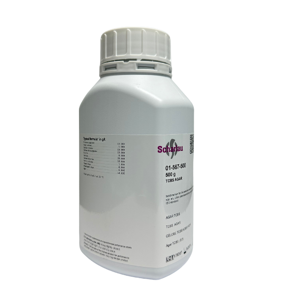 TCBS Agar môi trường chọn lọc dạng bột 500 g của Scharlab (mã sản phẩm 01-567-500) là medium vi sinh cao cấp dùng để phân lập chọn lọc các chủng Vibrio gây bệnh, đặc biệt là Vibrio parahaemolyticus và Vibrio cholerae theo tiêu chuẩn ISO 8914 và ISO 21872-2. Được đóng gói dạng chai 500 g bột môi trường chân không, sản phẩm phù hợp cho các phòng thí nghiệm nghiên cứu, phân tích vi sinh trong thực phẩm, nước và mẫu lâm sàng.